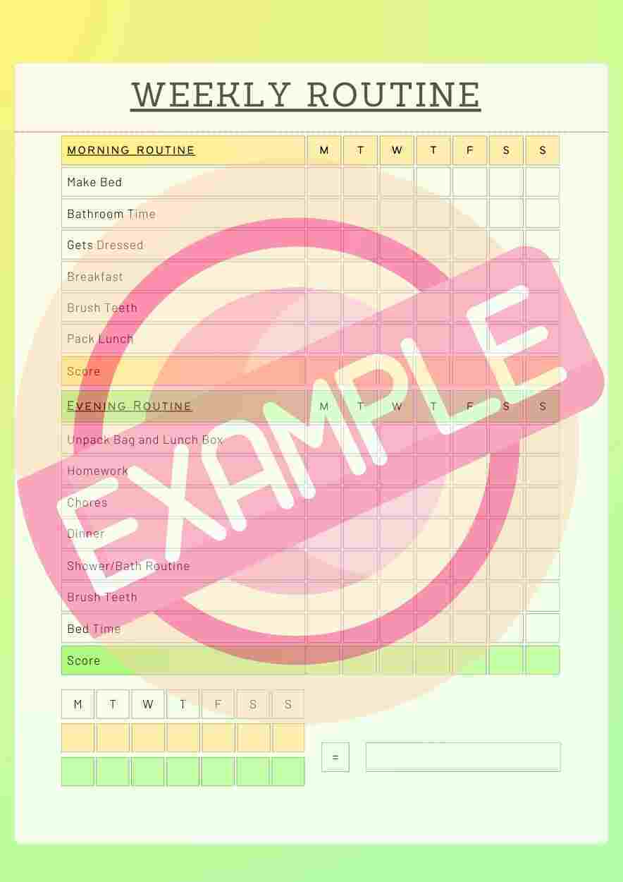 Support your child's routine with our vibrant morning and evening checklist template. With a simple design, it's a home essential, especially for kids who thrive with visual reminders. Utilize this template to encourage responsibility and reward success with customizable point systems. Make daily tasks fun and achievable! (13 Color variations)
