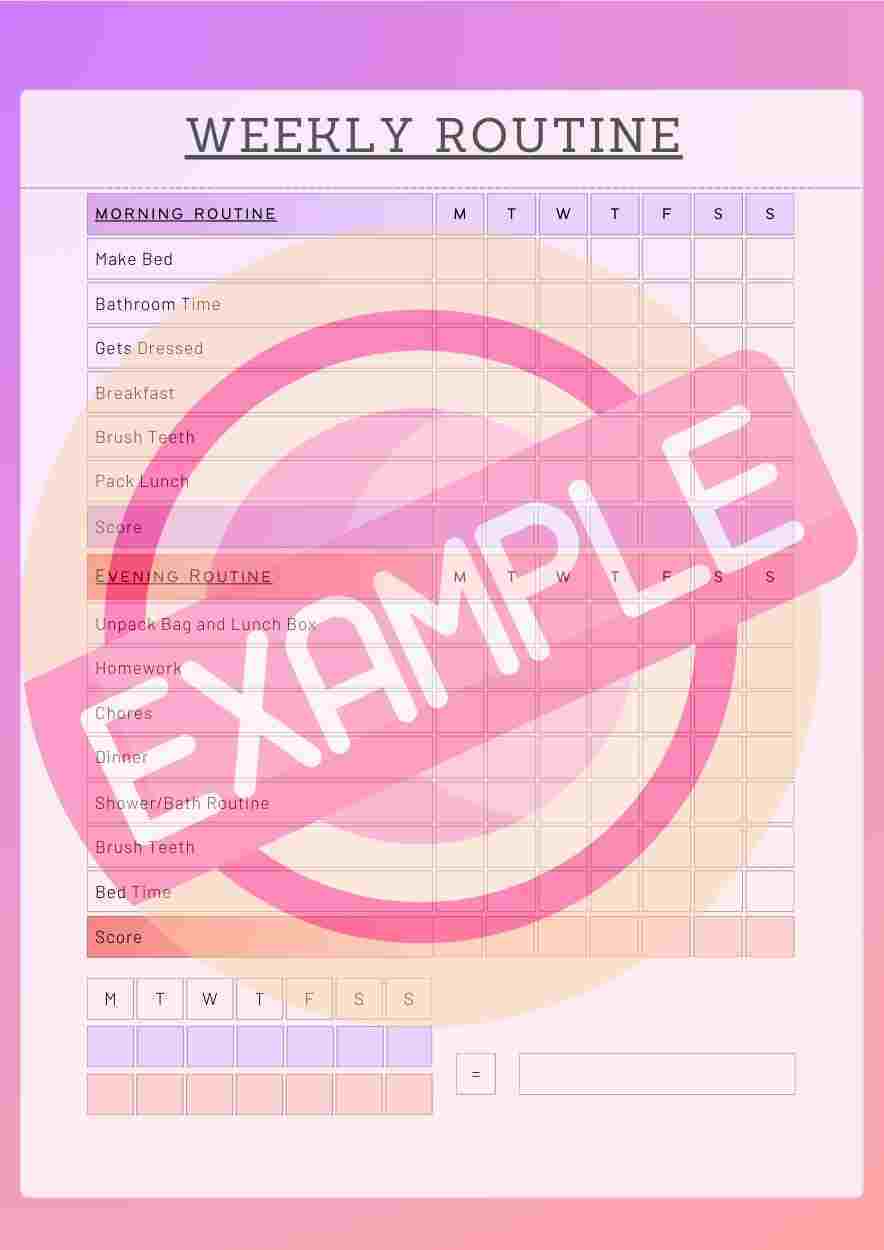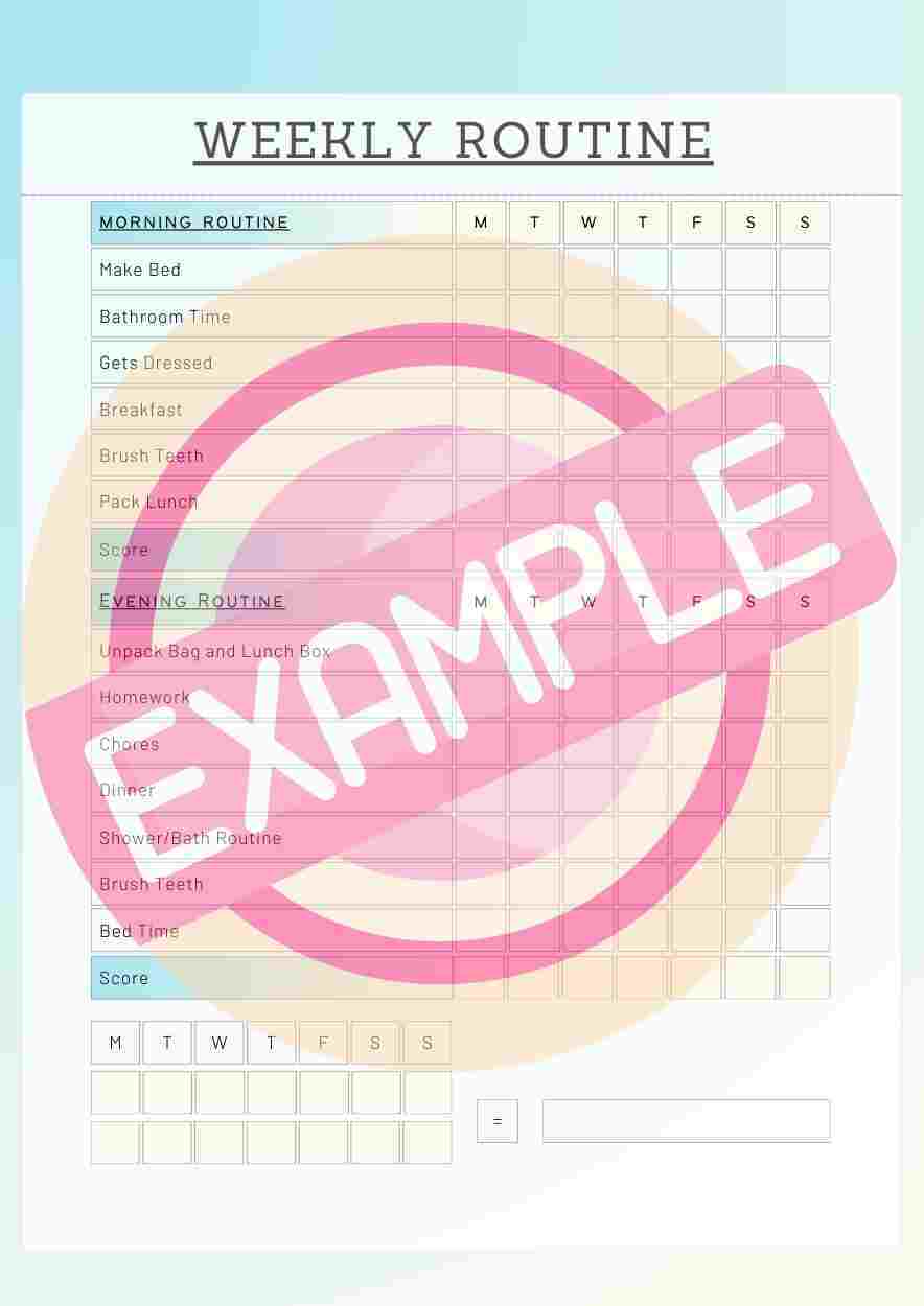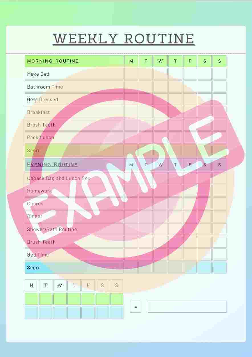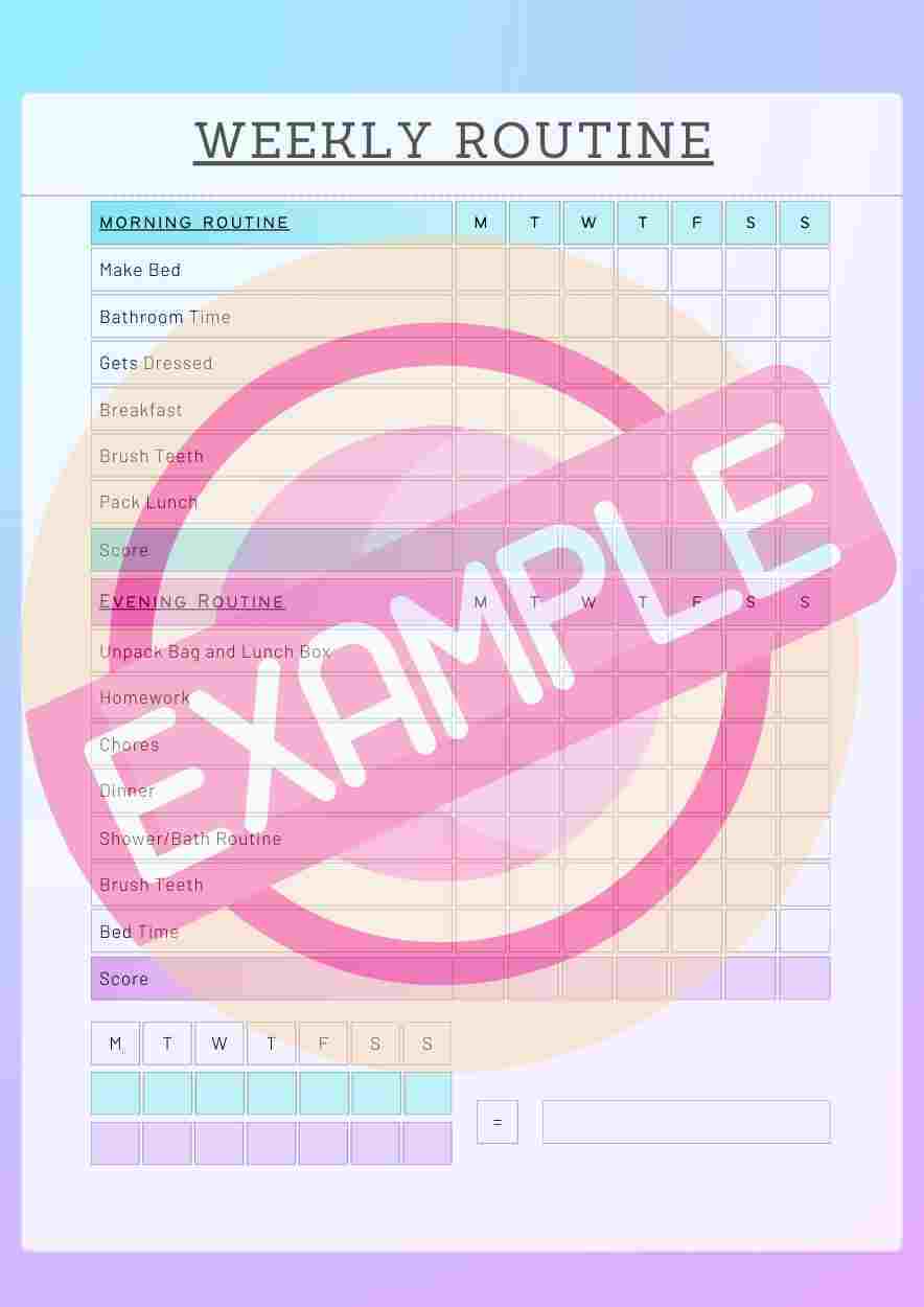 Support your child's routine with our vibrant morning and evening checklist template. With a simple design, it's a home essential, especially for kids who thrive with visual reminders. Utilize this template to encourage responsibility and reward success with customizable point systems. Make daily tasks fun and achievable! (13 Color variations)